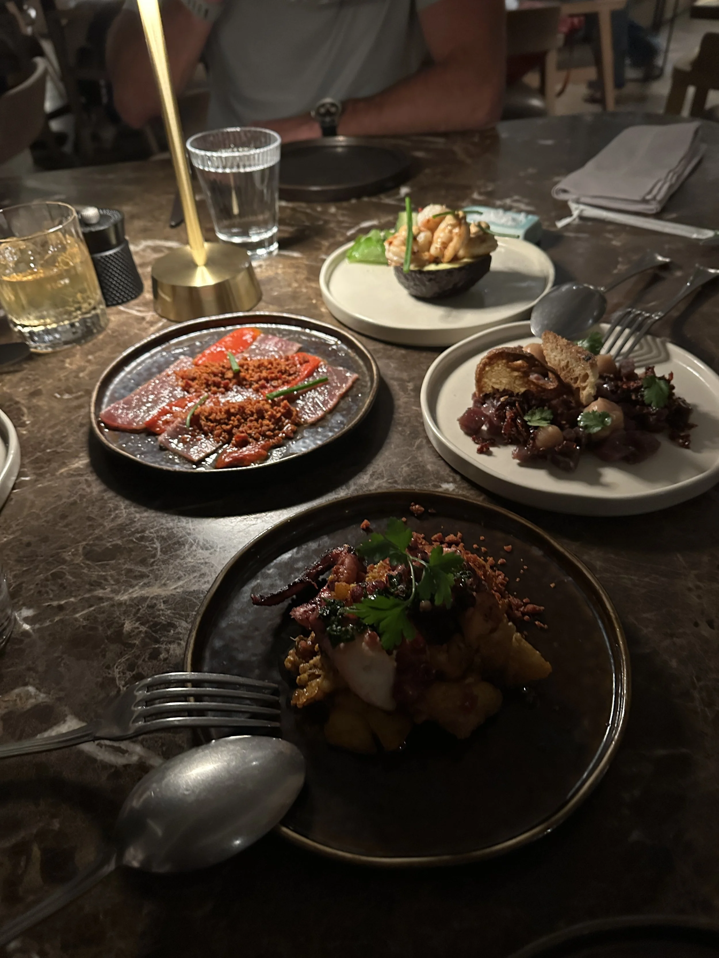 We stayed at the InterContinental Hotel, conveniently located next to the airport which is ideal for a one-night stay before an early flight. That evening, we took an Uber (we were advised to use Uber Black for safety) to the Rosebank area for dinner at Marble. The food was excellent, and the open-fire cooking gave the whole restaurant a lively, energetic vibe. Before dinner, we stopped for a drink at Sin+Tax, a moody, tucked-away speakeasy known for its craft cocktails and creative presentation. (And by tucked away, I mean the door is hidden in an alley with two very serious looking bouncers outside the door.)