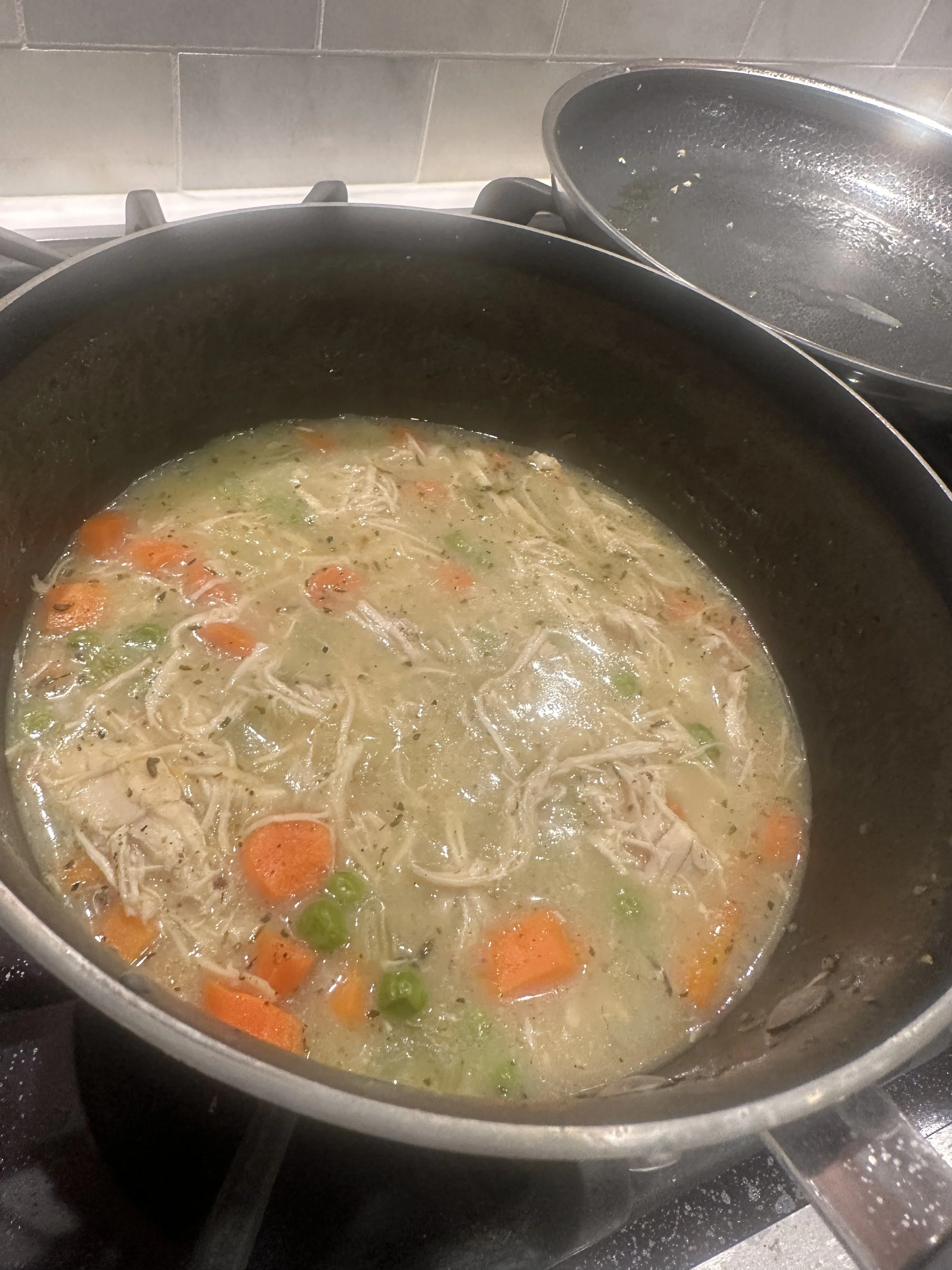 Stir in the cornstarch slurry. The soup will start to thicken like a classic pot pie filling.
